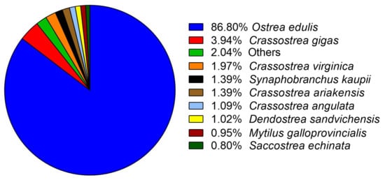 The species distribution analysis of transcripts annotation showed that de novo assembly presented high similarity with several oyster species with available genomics sequences such as Ostrea edulis, Crassostrea gigas, and Crassostrea virginica among others (Figure 3).