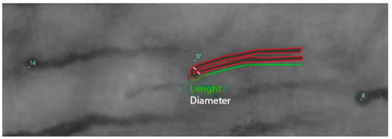 After the procedure, videos were exported in AVI format and the clearest frames were extracted and then processed to optimize contrast, exposure, and color curves for enhanced visibility. Quantitative analysis was performed using dedicated software (ImageJ, v1.54, NIH) with a conversion scale of 2.65 microns per pixel. The analysis was performed in single-blind (Figure 1).