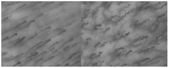 Among the groups analyzed, combusted tobacco users exhibited the most pronounced alterations. These included a significant reduction in capillary caliber, increased tortuosity, and a higher prevalence of microaneurysms and capillary crossings (as illustrated in the example shown in Figure 5). These findings are consistent with previous studies highlighting the adverse effects of conventional smoking on the vascular system [13]. Chronic inflammation, persistent vasoconstriction, and endothelial dysfunction are key mechanisms underlying these changes, driven by oxidative stress, the action of reactive oxygen species (ROS), and exposure to toxic compounds such as tobacco-specific nitrosamines (TSNAs), polycyclic aromatic hydrocarbons (PAHs), and heavy metals [14,15]. Additionally, the high combustion temperatures (exceeding 900 °C) not only induce direct thermal damage to oral tissues but also amplify the cytotoxic effects of the inhaled substances, leading to cumulative microvascular injury.