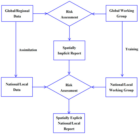 The members of IAS-RAWG should come from different countries with various academic backgrounds, and its operating mode can select an iterative mode, such as the two-step method [6]. The global working group uses global/regional data to generate spatial-implicit global reports for risk warning, and the national/local working group then uses the national/local data to generate spatial-explicit national/local reports for risk management (Figure 1). National/local IAS data can be extracted from global/regional data and further added by national/local working groups. At the same time, the global working group can also train national/local working groups to improve their capacities.