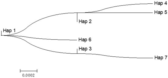 - Librado, P.; Rozas, J. DnaSP v5: A software for comprehensive analysis of DNA polymorphism data. Bioinformatics 2009, 25, 1451–1452. [Google Scholar] [CrossRef]
