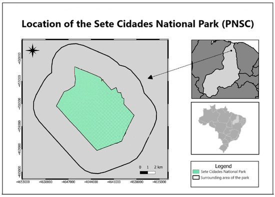 In Brazil, integrally protected areas aim to preserve nature and are highly restrictive regarding the use of their resources. One type of integrally protected area is National Parks [22]. The Sete Cidades National Park (PNSC) is located in a transition area between the Cerrado and Caatinga in the north of the state of Piauí, Northeast Brazil, and is therefore subject to great environmental heterogeneity, which allows it to shelter a wide diversity of organisms [23]. However, despite Brazilian laws prohibiting its exploitation, the advance of urban and agricultural frontiers threatens its biodiversity [24].