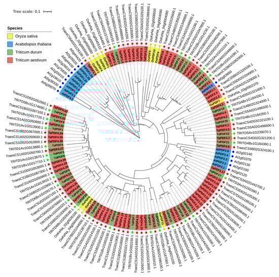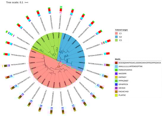 The resulting protein trees were visualized using the Interactive Tree of Life tool (iTOL, available at https://itol.embl.de/, accessed on 22 January 2025, [42]). Additionally, the conservation of the TdPDF motif was assessed using the MEME v5.4.1 tool and visualized alongside the trees (https://meme-suite.org, accessed on 22 January 2025, [43]).