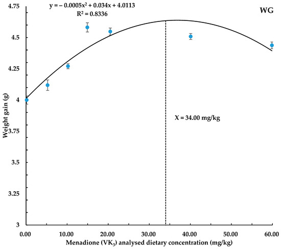 | Vitamin K3 (mg/kg) | 0.16 | 5.25 | 10.22 | 14.93 | 20.51 | 40.09 | 59.87 |