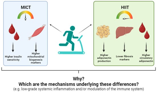 - Wang, N.; Liu, Y.; Ma, Y.; Wen, D. High-intensity interval versus moderate-intensity continuous training: Superior metabolic benefits in diet-induced obesity mice. Life Sci. 2017, 191, 122–131. [Google Scholar] [CrossRef] [PubMed]