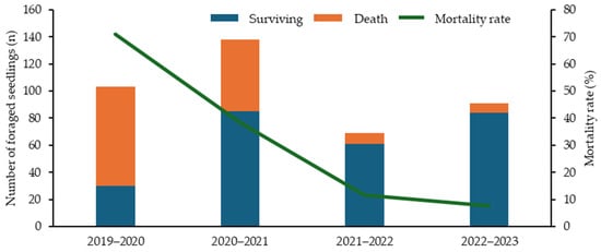 2.6.3. Mortality and Morphology of Foraged Seedlings