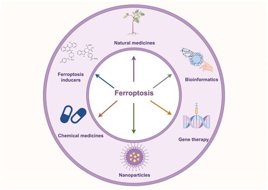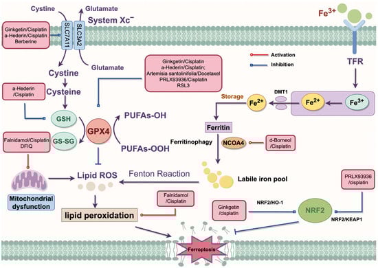 - Wang, H.; Xie, Y. Advances in Ferroptosis Research: A Comprehensive Review of Mechanism Exploration, Drug Development, and Disease Treatment. Pharmaceuticals 2025, 18, 334. [Google Scholar] [CrossRef]