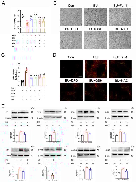 3.4. Ferroptosis Regulates BU-Induced GC-1 Spg Cell Death