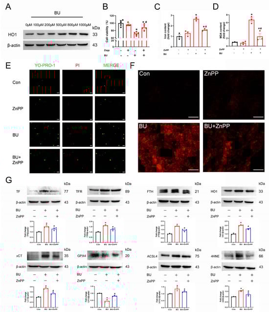 3.5. The HO1 Inhibitor ZnPP Suppresses BU-Induced Ferroptosis in GC-1 Spg Cells