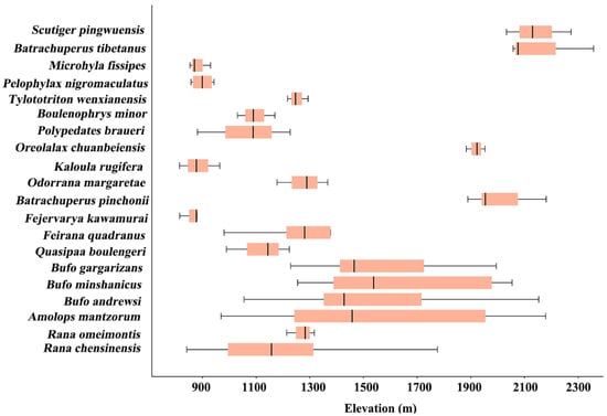 Elevational ranges for each amphibian species recorded in the Tangjiahe National Nature Reserve, western China.