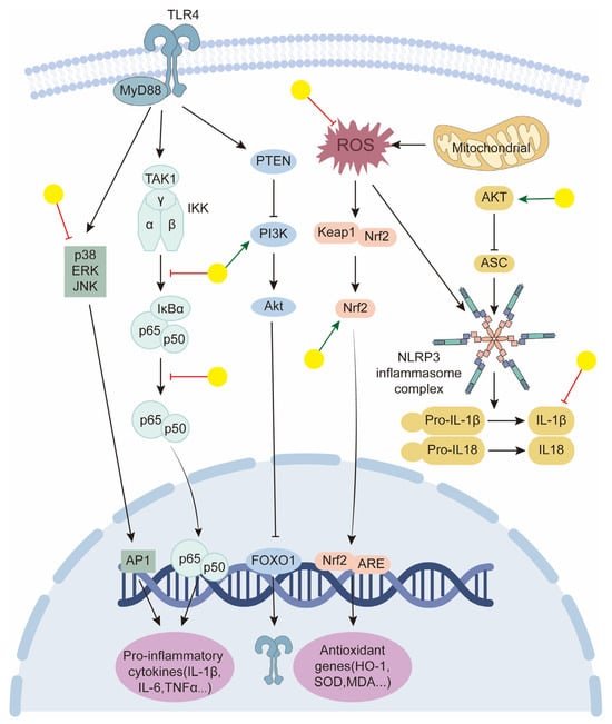 - Wen, Y.; Han, C.; Liu, T.; Wang, R.; Cai, W.; Yang, J.; Liang, G.; Yao, L.; Shi, N.; Fu, X.; et al. Chaiqin chengqi decoction alleviates severity of acute pancreatitis via inhibition of TLR4 and NLRP3 inflammasome: Identification of bioactive ingredients via pharmacological sub-network analysis and experimental validation. Phytomedicine 2020, 79, 153328. [Google Scholar] [CrossRef]