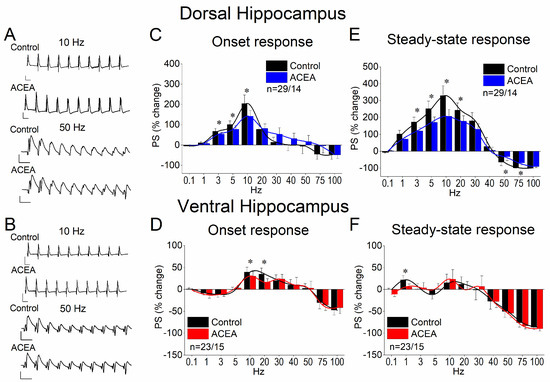 3.3. ACEA Modulates STND More in the Dorsal Than in the Ventral Hippocampus