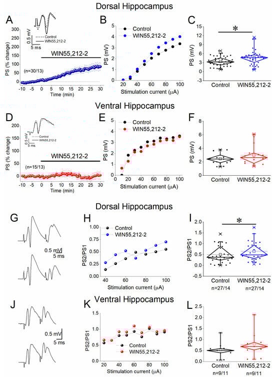 3.5. WIN55,212-2 Regulates STND More in the Dorsal Than in the Ventral Hippocampus