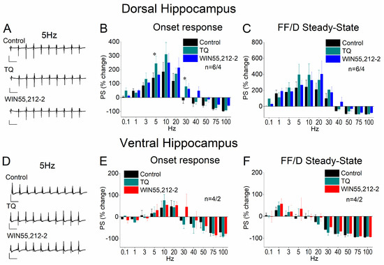 3.1. Basal Excitation, Paired-Pulse Inhibition (PPI), and Short-Term Neuronal Dynamics (STND) in the Dorsal and Ventral Hippocampus