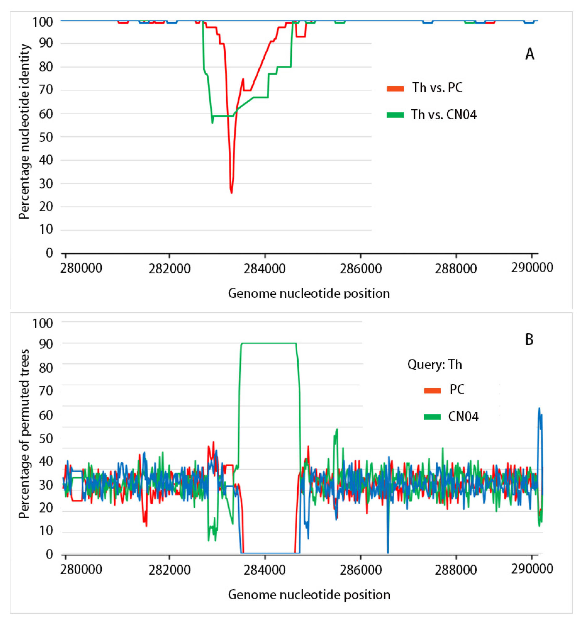 - Samson, S.; Lord, É.; Makarenkov, V. SimPlot++: A Python application for representing sequence similarity and detecting recombination. Bioinformatics 2022, 38, 3118–3120. [Google Scholar] [CrossRef] [PubMed]