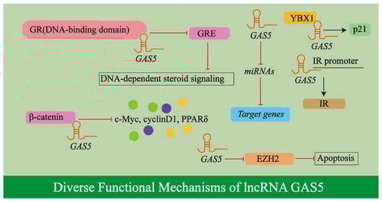 2.3. Diverse Functional Mechanisms of lncRNA GAS5