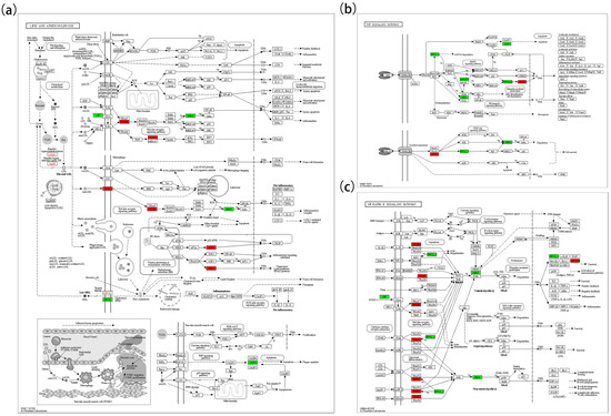 KEGG map 1. (a) Represents the Lipid and Atherosclerosis pathway (map05417); (b) represents the TNF signaling pathway (map04668); (c) represents the NF-κB signaling pathway (map04064).