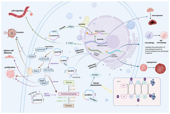 57. Xu, K.; Zhang, C.; Gao, W.; Shi, Y.; Pu, S.; Huang, N.; Dou, W. The involvement of circRNAs in molecular processes and their potential use in therapy and diagnostics for glioblastoma. Gene 2025, 940, 149214. [Google Scholar] [CrossRef]