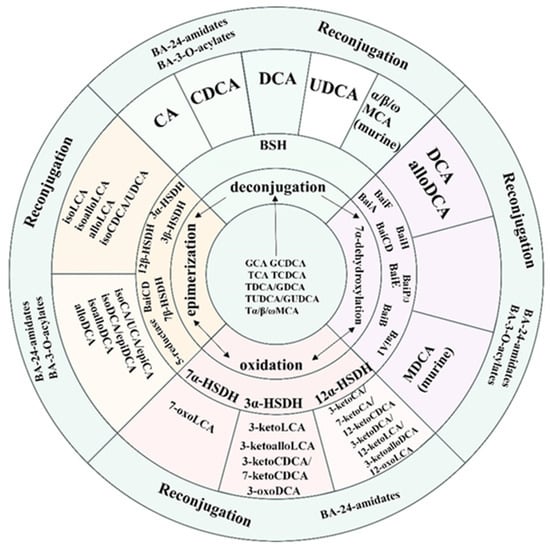 - Ridlon, J.M.; Gaskins, H.R. Another renaissance for bile acid gastrointestinal microbiology. Nat. Rev. Gastroenterol. Hepatol. 2024, 21, 348–364. [Google Scholar] [CrossRef] [PubMed]
