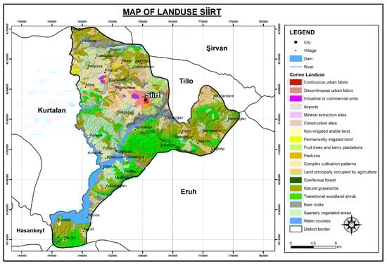 - Mut, S. Comparative Land Use in the Central District of Siirt and Tillo District. Master’s Thesis, Karabük University, Karabük, Türkiye, 2020. [Google Scholar]