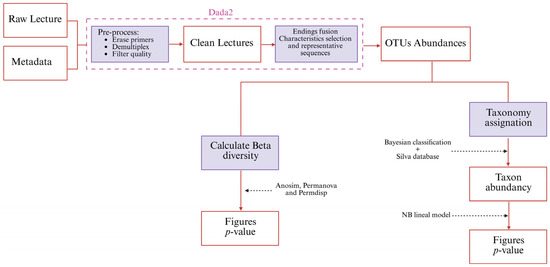 A schematic view of the process can be found in Figure 1. Demultiplexed crude readings, both forward and reverse, were processed using QIIME2 [38].