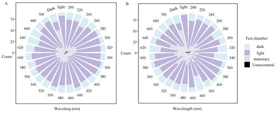 2.6. Testing Phototaxis with Monochromatic Light Across Multiple Wavelengths
