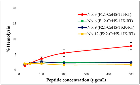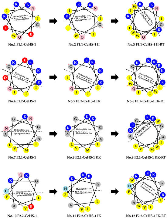 | 4 | F1.2-CeHS-1 | KIQKKIDEKIG-NH2 | 11 | +3 | 22.27 | −0.017 | 0.609 |
