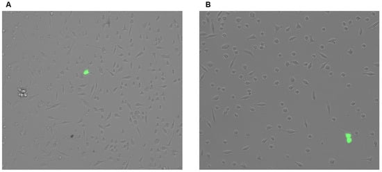 We used conventional transfection established in our laboratory [] to attempt to transfect PMs with a GFP-expressing plasmid (System Biosciences, Palo Alto, CA, USA). We also attempted to introduce GFP-expressing plasmids to PMs via utilizing an advanced, non-liposomal polymeric plasmid DNA delivery system acknowledged to be superior for transfecting primary macrophages when compared to conventional plasmid DNA transfection [,]. For this alternative plasmid DNA transfection protocol, we adhered to the manufacturer’s directions by first adding pGFP to Opti-MEM™ I Reduced Serum Medium (Gibco, Waltham, MA, USA) contained in a sterile tube. After mixing well with pipetting, we added TransIT-X2 (Mirus Bio, Madison, WI, USA) to this mixture, pipetted to mix thoroughly, and allowed the mixture to incubate at room temperature for 20 min, and then we added this solution drop-wise to cultured PMs. Afterwards, we evenly distributed this solution to the PMs by gently agitating the treatment plates. Mock-transfected PMs were used as control cells. Forty-eight hours after the respective transfection procedures, we imaged PMs for the detection of GFP, utilizing an EVOS 5000 imaging system (Thermo Fisher) and a GFP light cube (ex/em: 470/525 nm).