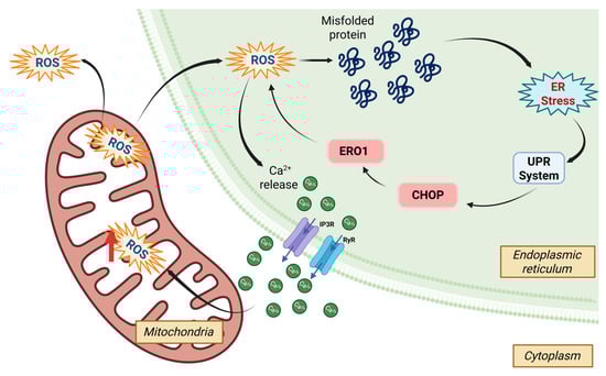 Stress response at the cellular level involves multiple mechanisms, one of which is unfolded protein (UPR), leading to endoplasmic reticulum (ER) stress. The ER is a large organelle responsible for lipid and steroid synthesis, Ca2+ homeostasis and storage, carbohydrate metabolism, and protein synthesis. ER stress causes defects in lipid metabolism, apoptosis, autophagy, reduced respiratory activity, and oxidative phosphorylation. As the cell’s primary Ca2+ storage site and the location for protein biosynthesis, folding, and assembly, the ER plays a crucial role in cellular function [120,121].