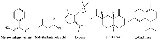 - Sahingil, D. GC/MS-Olfactometric Characterization of the Volatile Compounds, Determination Antimicrobial and Antioxidant Activity of Essential Oil from Flowers of Calendula (Calendula officinalis L.). J. Essent. Oil Bear. Plants 2019, 22, 1571–1580. [Google Scholar] [CrossRef]
