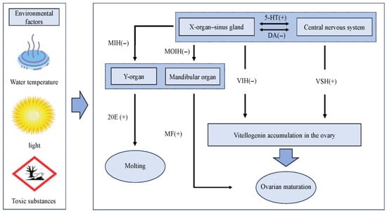- Jayasankar, V.; Tomy, S.; Wilder, M.N. Insights on molecular mechanisms of ovarian development in Decapod Crustacea: Focus on vitellogenesis-stimulating factors and pathways. Front. Endocrinol. 2020, 11, 577925. [Google Scholar] [CrossRef]