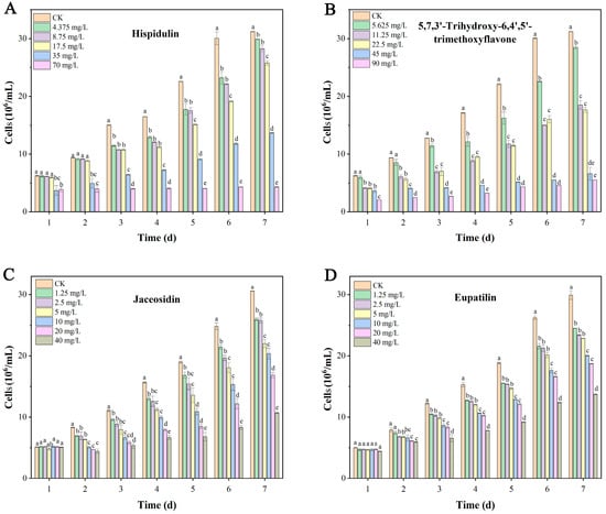 3.6. The Inhibitory Effects of Main Flavonoids in DE on M. aeruginosa