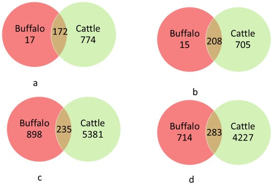 - Wang, Q.; Xiaomei, G.; Yunyan, Y.; Caixia, Z.; Yingbai, Y.; Bo, L. A comparative study on rumen ecology of water buffalo and cattle calves under similar feeding regime. Vet. Med. Sci. 2020, 6, 746–754. [Google Scholar] [CrossRef] [PubMed]