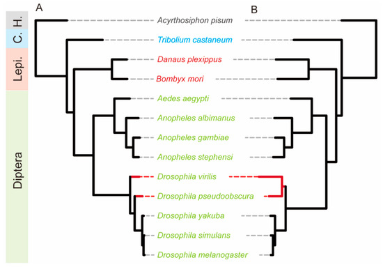 - Pal, A.; Vicoso, B. The X Chromosome of Hemipteran Insects: Conservation, Dosage Compensation and Sex-Biased Expression. Genome Biol. Evol. 2015, 7, 3259–3268. [Google Scholar] [CrossRef] [PubMed]