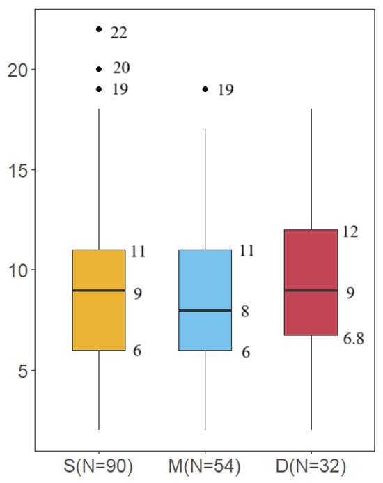 The number of species observed in samples from different water layers (S represents surface water, M represents middle water, D represents deep water).