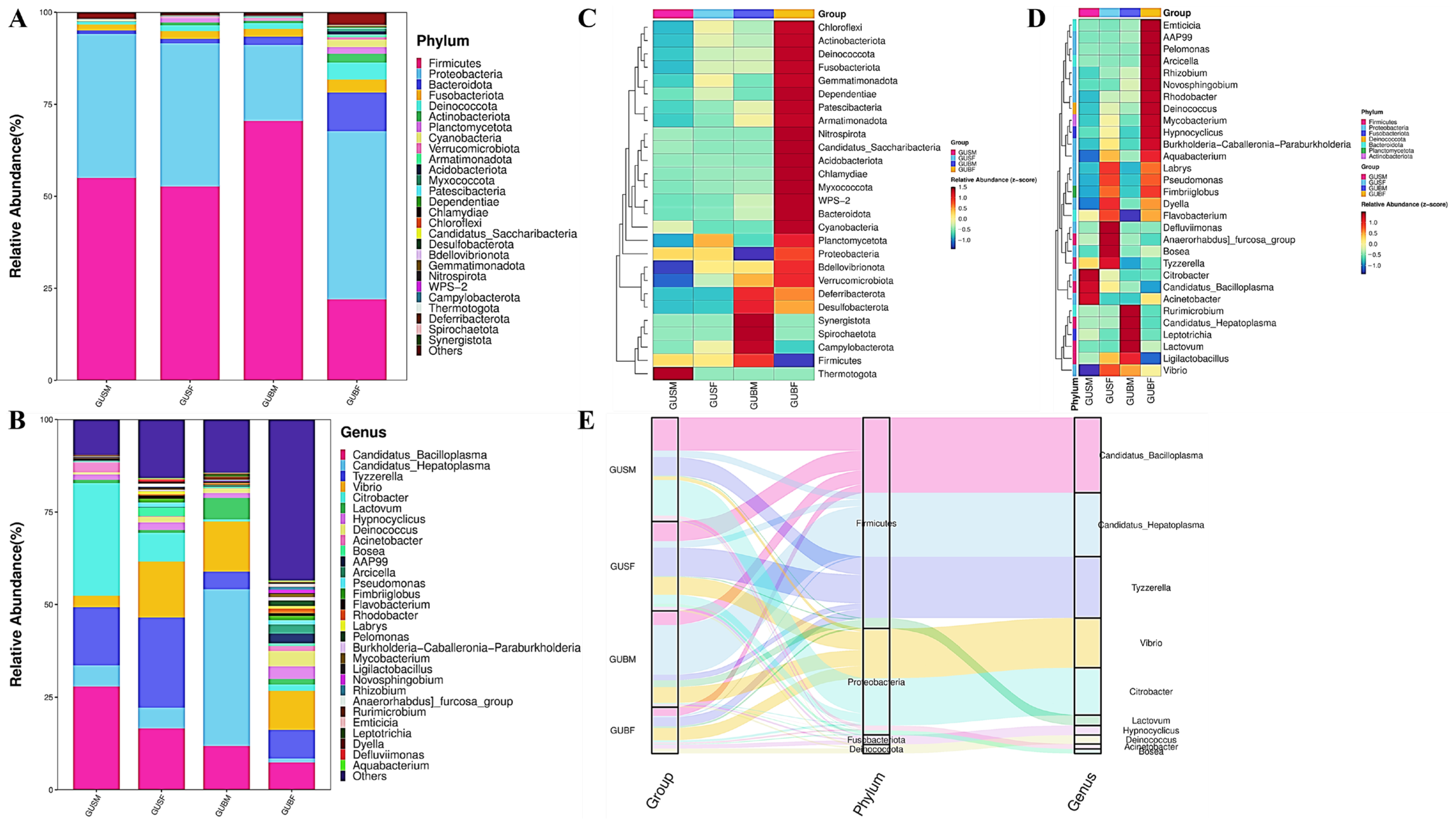 GUSF vs. GUSM | Genus | Mean _GUSF | Std _GUSF | Mean _GUSM | Std _GUSM | p value | Regulation |