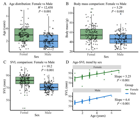 - Chen, H.; Bu, R.; Ning, M.; Yang, B.; Wu, Z.; Huang, H. Sexual dimorphism in the Chinese endemic species Hynobius maoershanensis (Urodela: Hynobiidae). Animals 2022, 12, 1712. [Google Scholar] [CrossRef] [PubMed]
