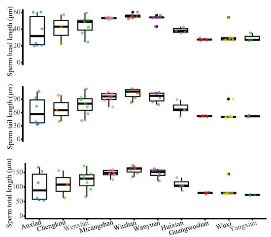 - Zeng, Y.; Lou, S.L.; Liao, W.B.; Jehle, R. Evolution of sperm morphology in anurans: Insights into the roles of mating system and spawning location. BMC Evol. Biol. 2014, 14, 104. [Google Scholar] [CrossRef]