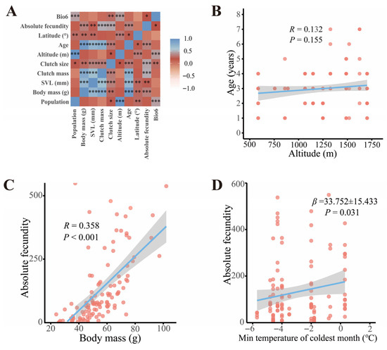 - Jin, L.; Yang, S.N.; Liao, W.B.; Lüpold, S. Altitude underlies variation in the mating system, somatic condition, and investment in reproductive traits in male Asian grass frogs (Fejervarya limnocharis). Behav. Ecol. Sociobiol. 2016, 70, 1197–1208. [Google Scholar] [CrossRef]