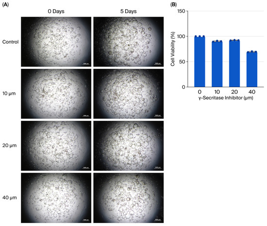 16]. Importantly, GSI at 10–20 μM demonstrated minimal cytotoxicity and preserved the 3D organoid structure over five days, supporting its utility for long-term inhibition studies in this model.