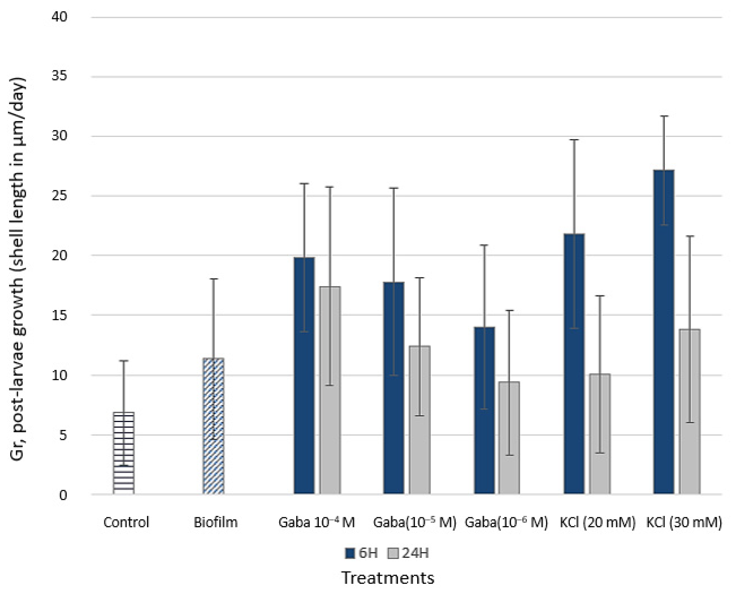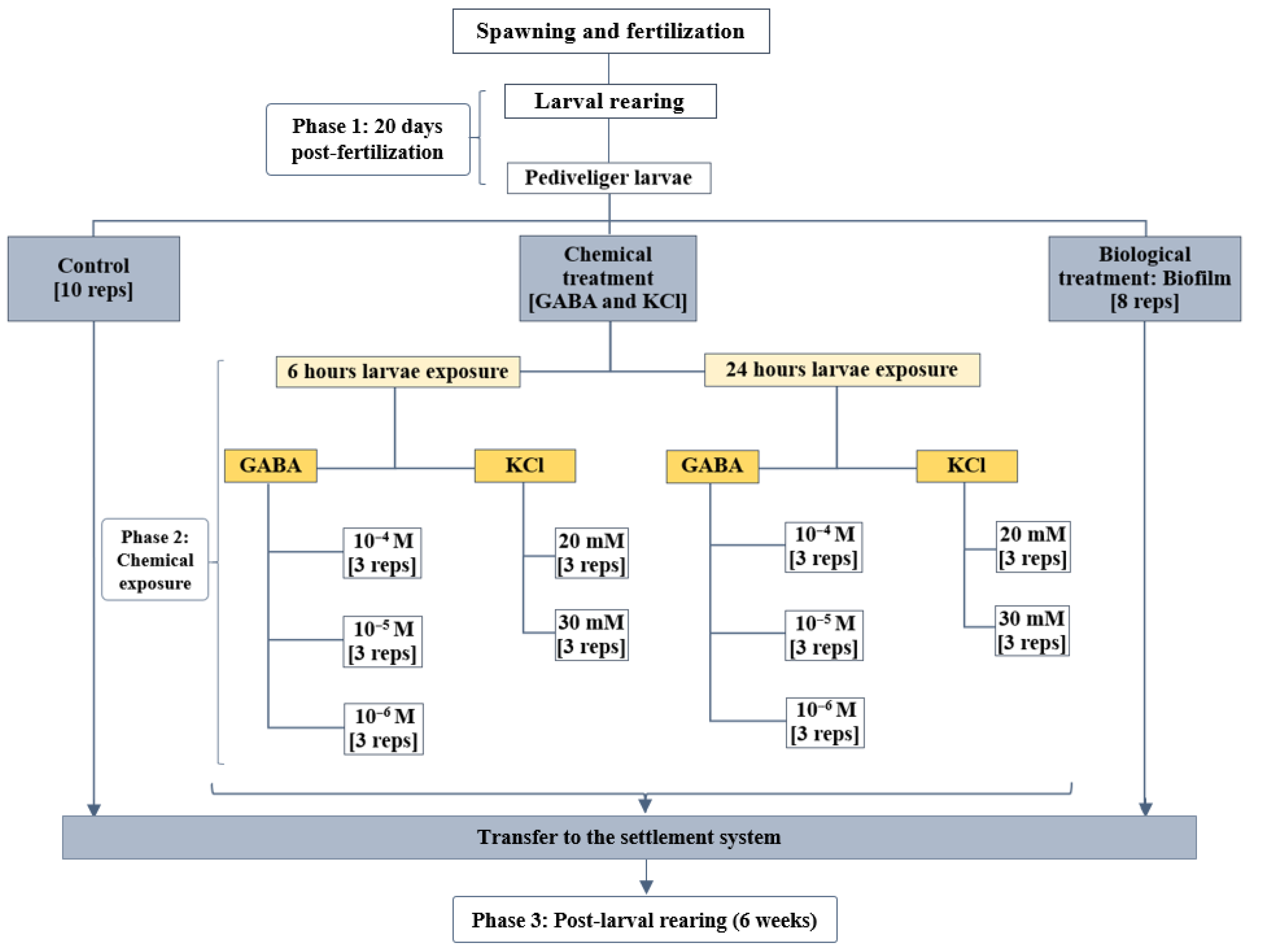 - García-Lavandeira, M.; Silva, A.; Abad, M.; Pazos, A.J.; Sánchez, J.L.; Pérez-Parallé, M.L. Effects of GABA and epinephrine on the settlement and metamorphosis of the larvae of four species of bivalve molluscs. J. Exp. Mar. Biol. Ecol. 2005, 316, 149–156. [Google Scholar] [CrossRef]