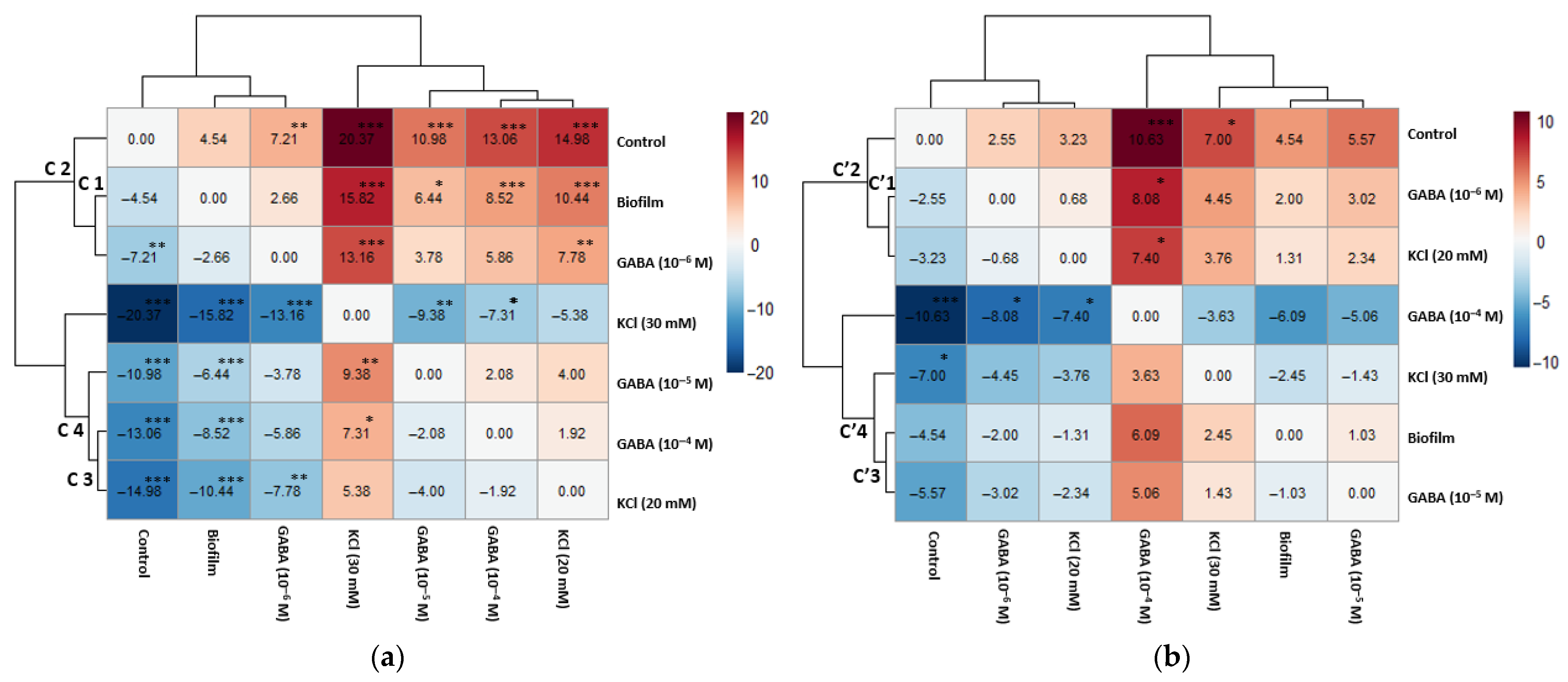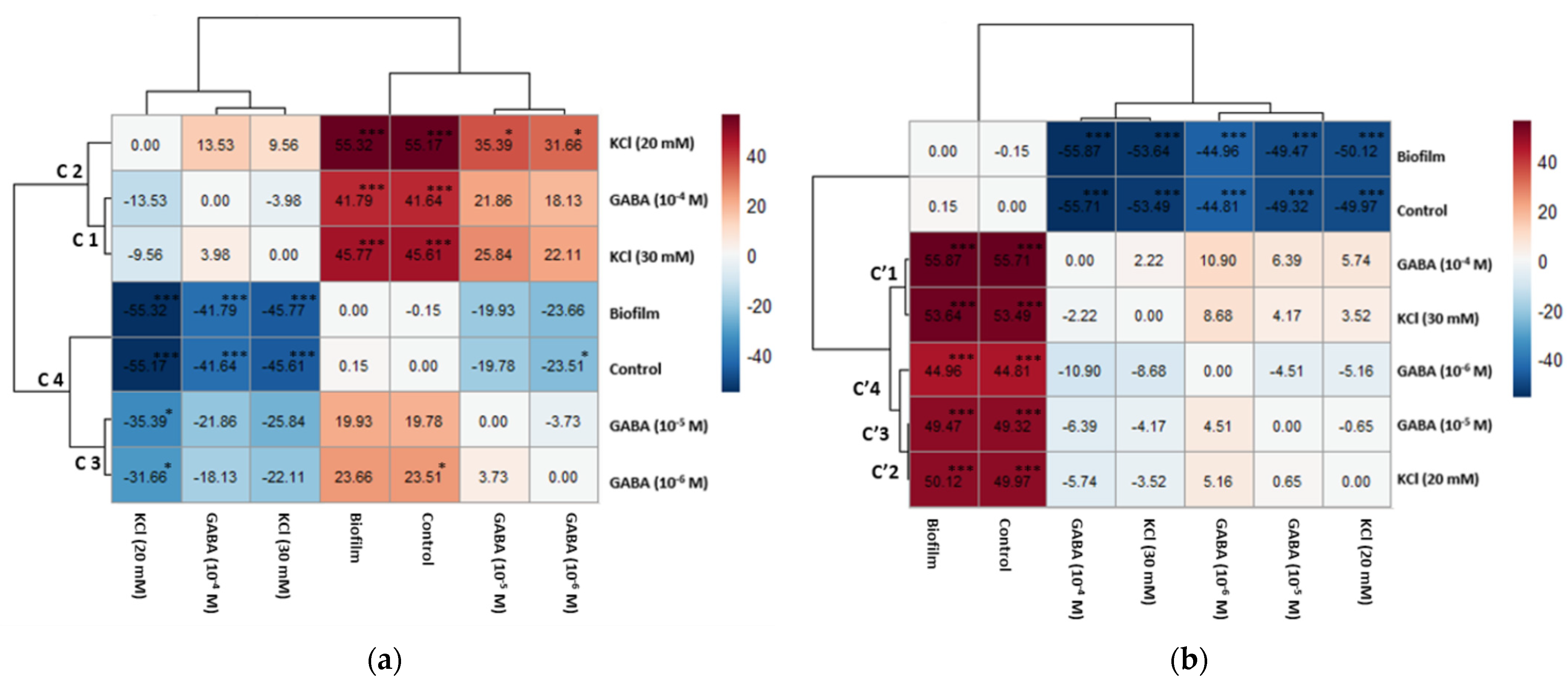 | Biofilm | 65.03 ± 15.16 b | 46.45 ± 15.15 b | ||||||||