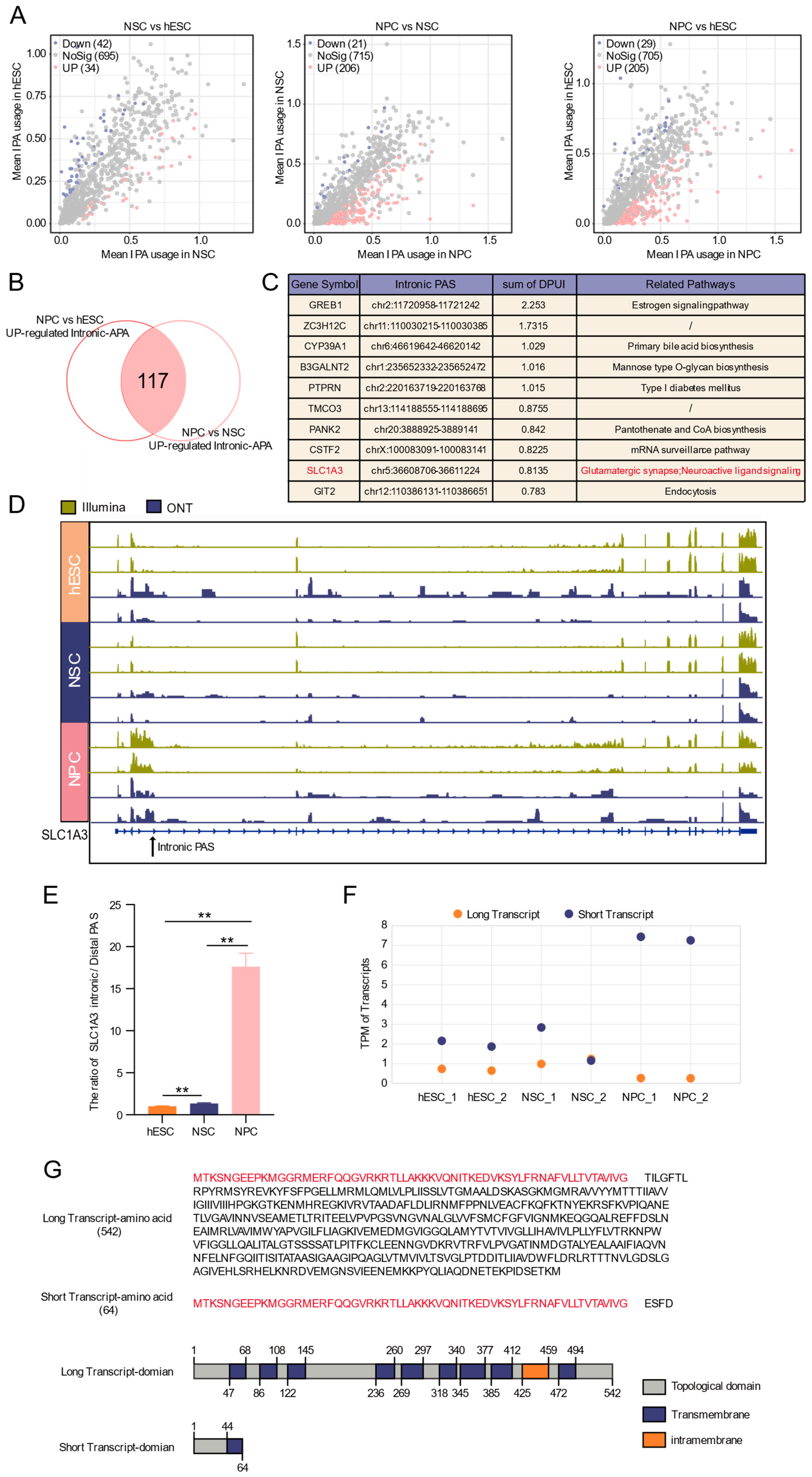 3.4. Widespread Intronic APA Events in the Neural Progenitor Cell Stage