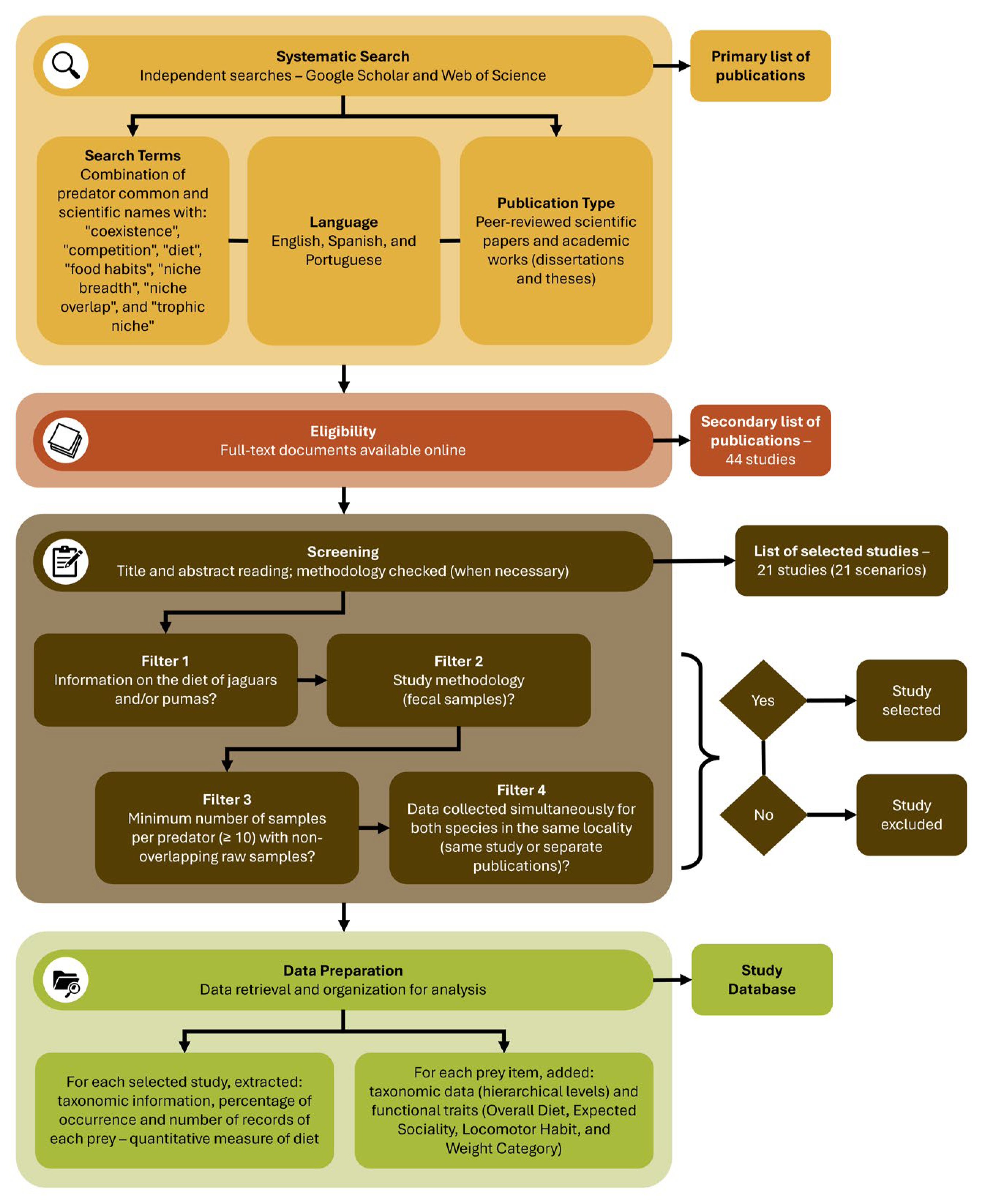 - Ferretti, F.; Lovari, S.; Lucherini, M.; Hayward, M.W.; Stephens, P.A. Continent-wide differences in diet breadth of large terrestrial carnivores: The effect of large prey and competitors. Mammal Rev. 2024, 54, 288–298. [Google Scholar] [CrossRef]