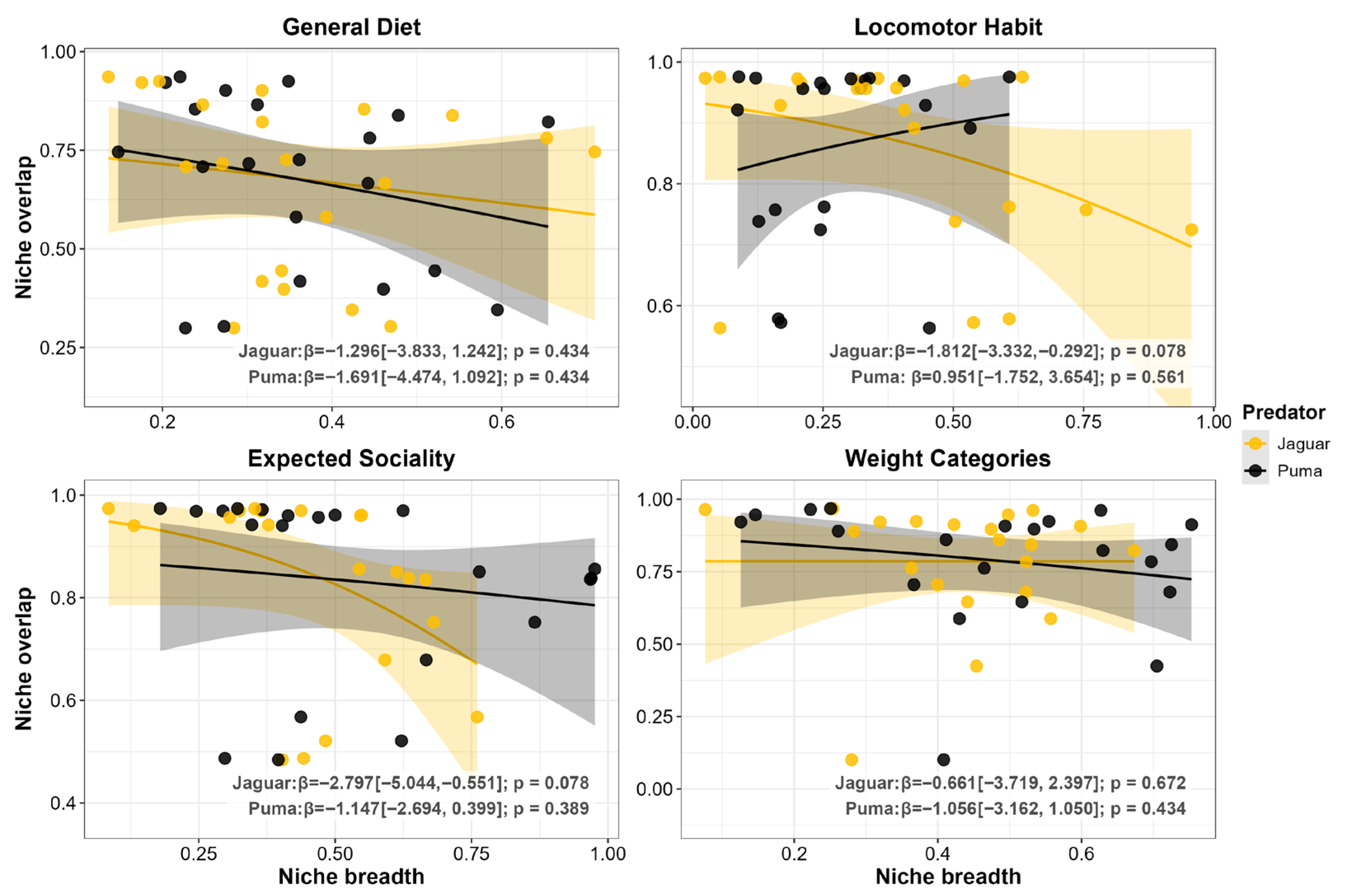 - Shedden-González, A.; Solórzano-García, B.; White, J.M.; Gillingham, P.K.; Korstjens, A.H. Drivers of jaguar (Panthera onca) and puma (Puma concolor) predation on endangered primates within a transformed landscape in southern Mexico. Biotropica 2023, 55, 1058–1068. [Google Scholar] [CrossRef]