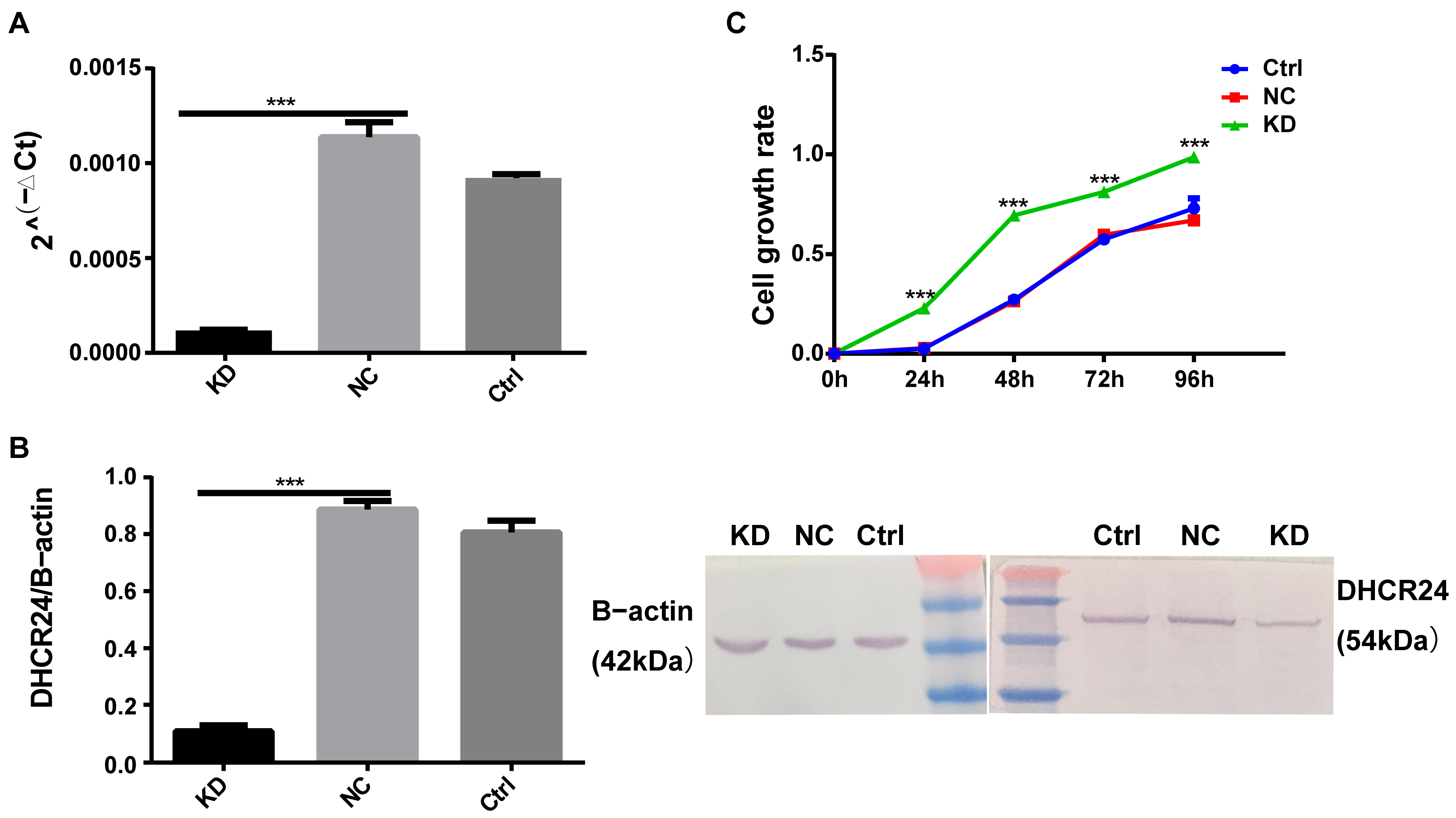 3.2.2. DHCR24 Knockdown Promotes Malignant Phenotypes in MCF7 Cells