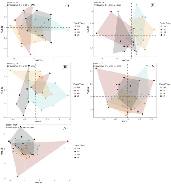 3.5. Distribution of Invertebrates in Woody Debris Based on NMDS Analysis