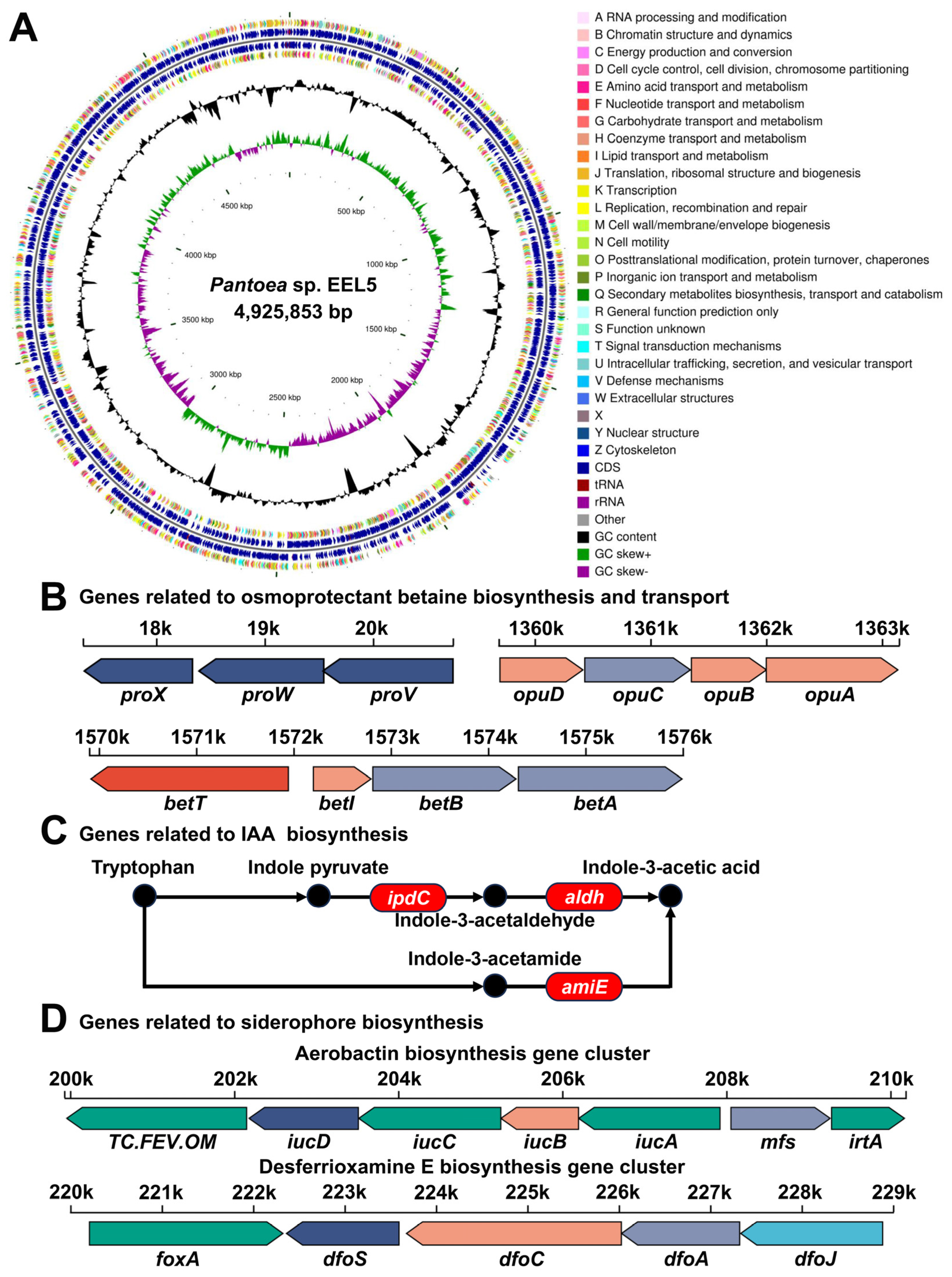 APA StyleYue, Z., Ni, M., Wang, N., Miao, J., Han, Z., Hou, C., Li, J., Chen, Y., Sun, Z., & Ma, K. (2026). Deciphering the Salt Tolerance Mechanisms of the Endophytic Plant Growth-Promoting Bacterium Pantoea sp. EEL5: Integration of Genomic, Transcriptomic, and Biochemical Analyses. Biology, 15(1), 45. https://doi.org/10.3390/biology15010045