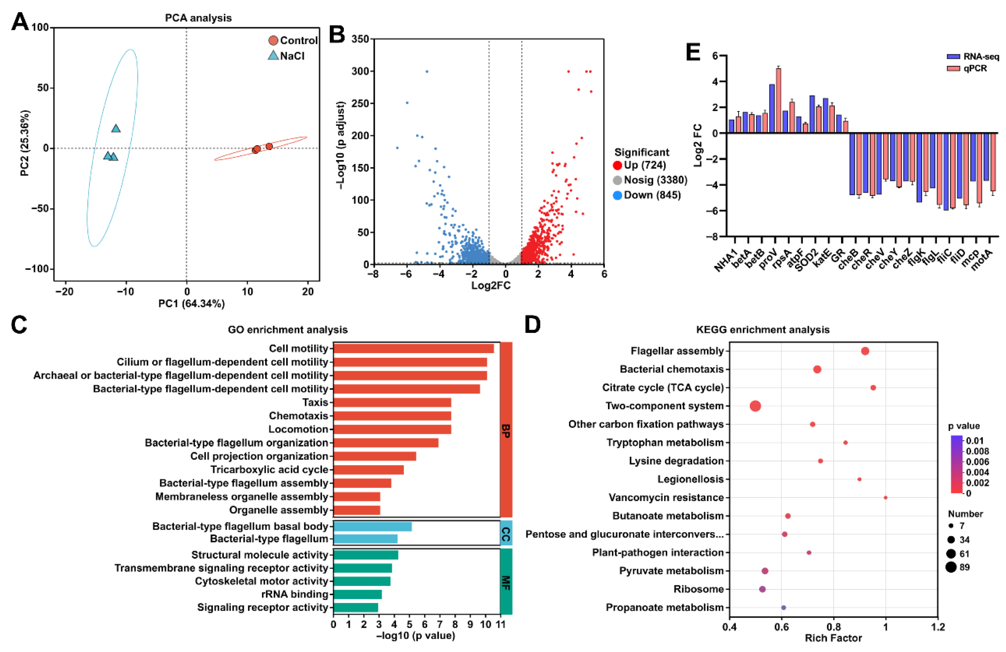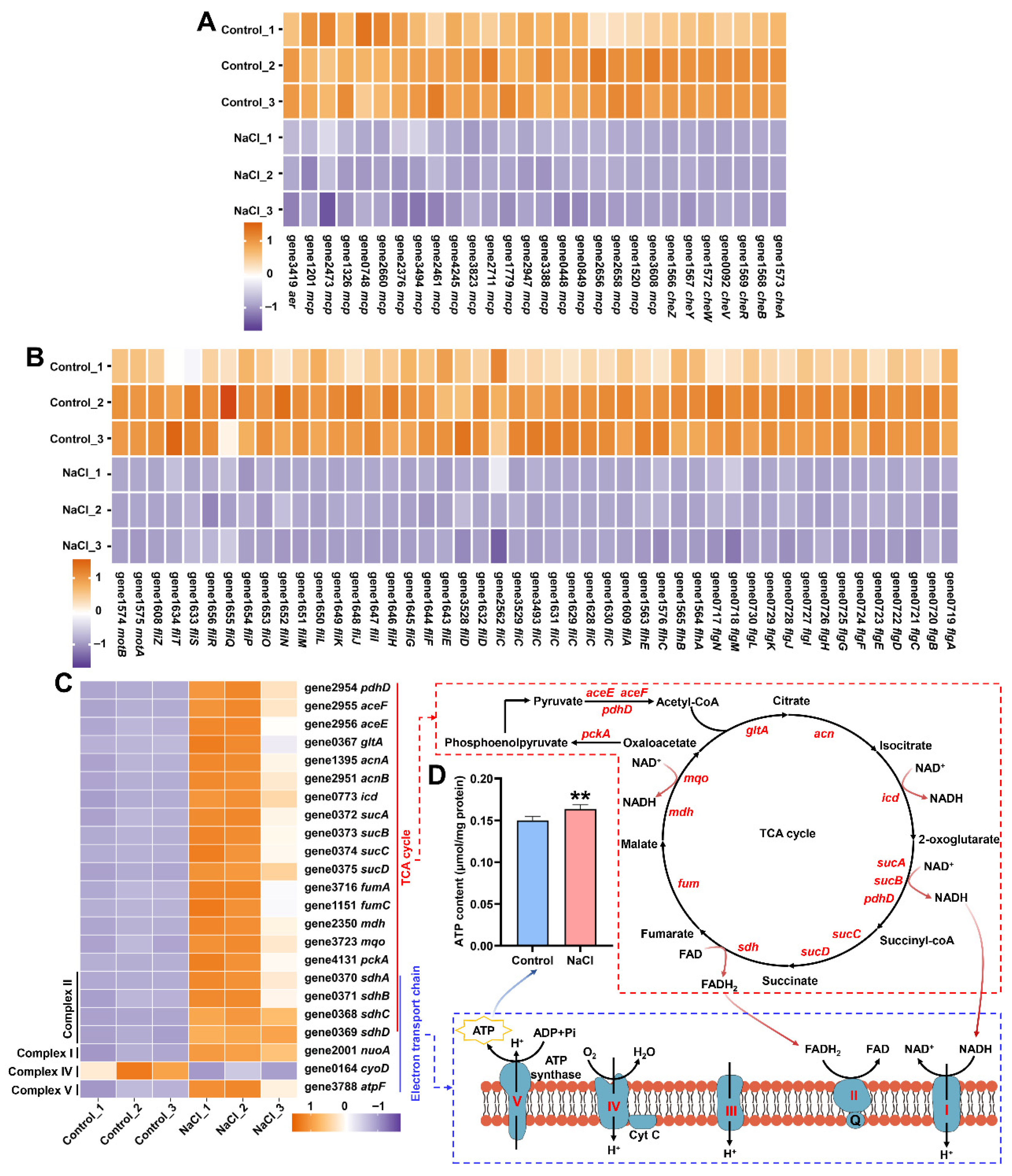 3.7. NaCl Stress Reprograms Energy Metabolism by Repressing Motility and Enhancing Respiration
