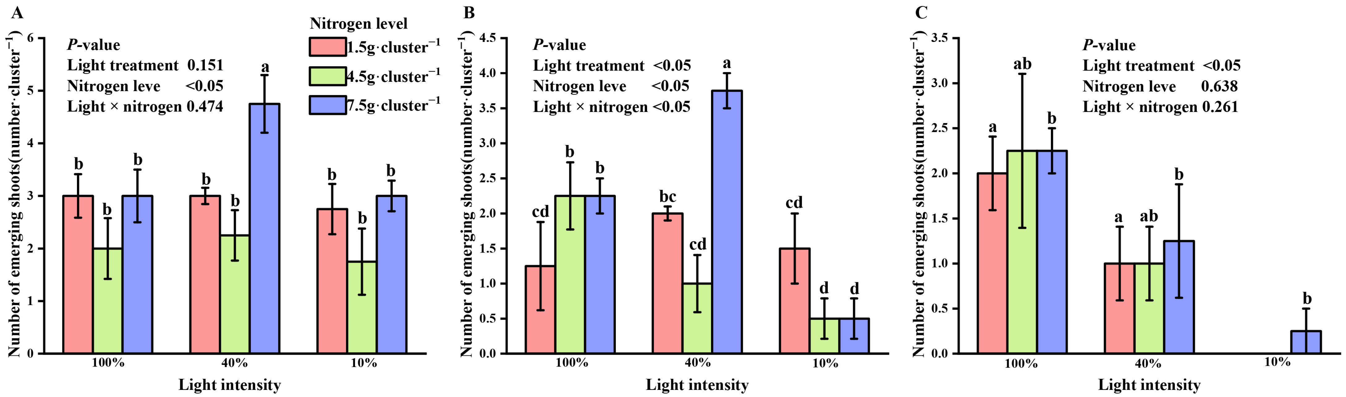 Interactive Effects of Light Intensity and Nitrogen Supply on Shoot Emergence and Associated Photosynthetic Traits in Dendrocalamus latiflorus